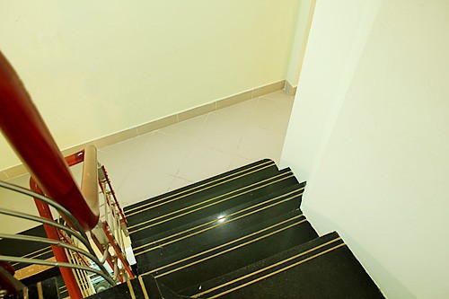 Từ tầng 4 lên tầng 5, chúng tôi đặt chân lên những bậc cầu thang được cách điệu hợp lý, giúp cho người đi tránh được cảm giác nhàm chán khi phải sử dụng cầu thang gỗ cho cả 5 tầng.