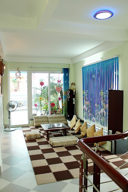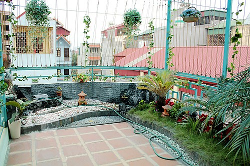 Từ phòng sinh hoạt chung nhìn ra là khoảng sân vườn – niềm tự hào của anh Tuyến – với không gian thoáng đãng và vô cùng gần gũi với thiên nhiên, ngập tràn ánh nắng và đầy hương gió.