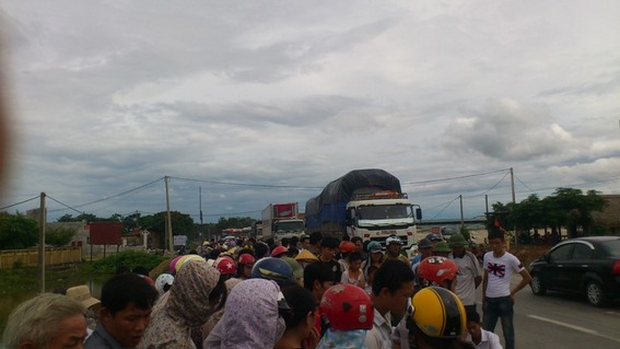 Đông đảo người dân có mặt tại hiện trường tai nạn. Ảnh N.Hưng