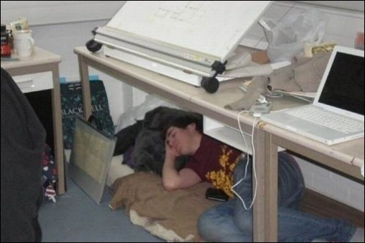 Hay đơn giản, cứ thế gục lên bàn mà ngủ thôi. Tuy nhiên, tư thế này mỏi lưng lắm nhé.