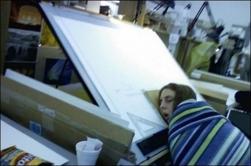 Ngủ say quá, đầu lìa khỏi bàn lúc nào còn không biết í!