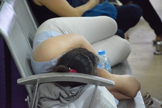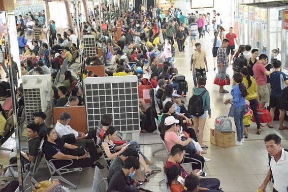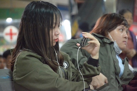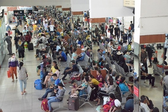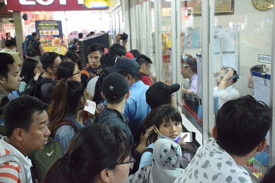 Do lượng người đổ dồn về quê đông, một số người dân chưa mua được vé nên tỏ ra mệt mỏi.
