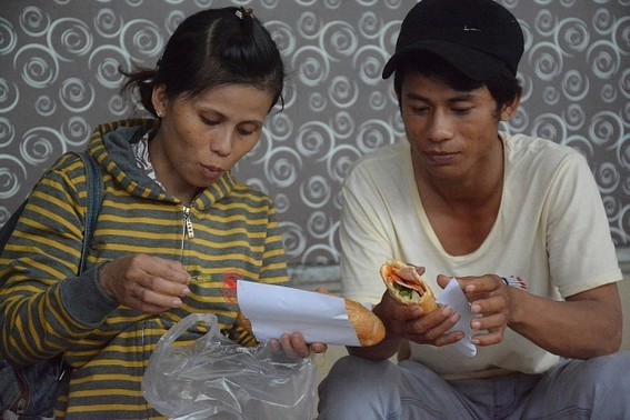 Đang vội ăn ổ bánh mì để chuẩn bị lên xe về quê với gương mặt đầy phấn khởi, vợ chồng anh Tuấn (quê Bình Phước) cho biết: "Năm ngoái tôi không được về quê đón Lễ Quốc khánh, năm nay gác lại công việc để về quê thăm gia đình".