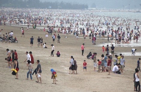Mỗi buổi chiều bãi biển Cửa Lò, Nghệ An lại đông nghịt người tìm xuống để “giải nhiệt”.