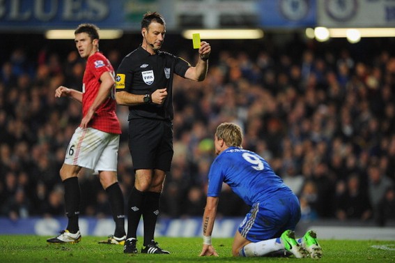 Trong đó, gây tranh cãi nhất là chiếc thẻ vàng thứ 2 của Fernando Torres sau pha va chạm với Jonny Evans. Trọng tài Mark Clattenburg cho rằng tiền đạo Tây Ban Nha đã có hành vi ăn vạ.