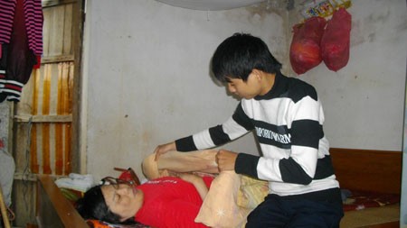 Cậu sinh viên Nguyễn Thành Luân chăm sóc mẹ liệt 2 chân