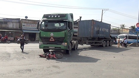 Khi rẽ sang đường đoạn giao lộ Quốc lộ 1 - Nguyễn Hữu Trí (H.Bình Chánh, TP.HCM) người phụ nữ bị một chiếc container BS: 66C - 032.66 chạy cùng chiều cũng đang quay đầu tông trúng rồi cuốn cả người và xe máy vào gầm.