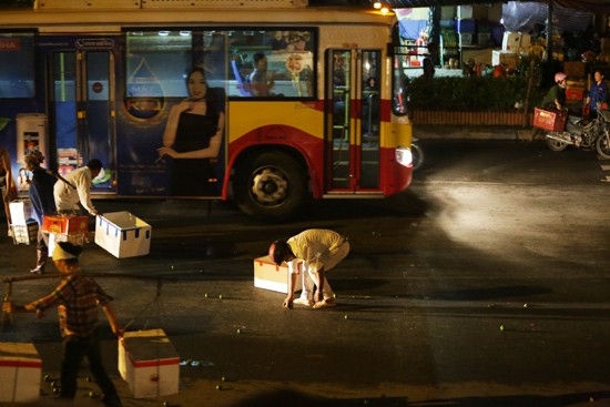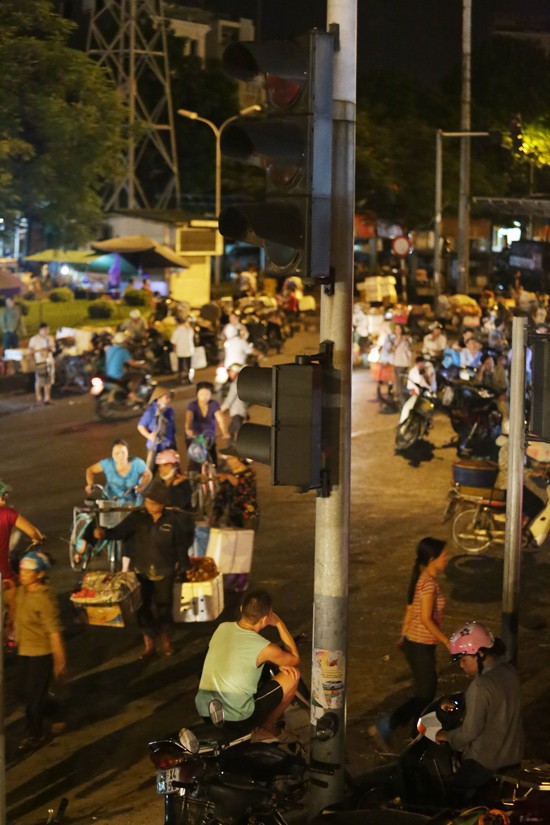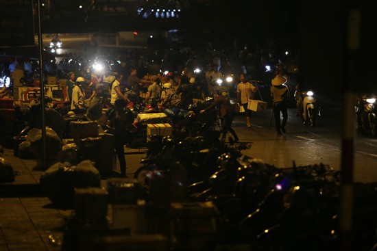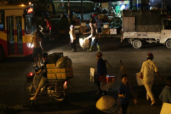 Sau khi hàng từ trên xe được chuyển xuống, hàng trăm người gánh hàng trên vai hay đặt trên những chiếc xe 2 càng vận chuyển băng qua đường khiến giao thông ở trước cổng chợ, trên đường đê Trần Khánh Dư lúc này hết sức hỗn loạn và nguy hiểm.