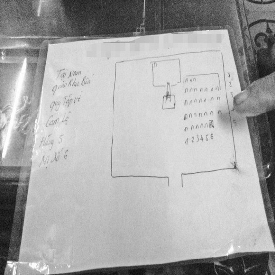 Để “bồi” thêm lòng tin cho ông Kh., Thuận tiếp tục “nổ” về khả năng của mình sau khi được ăn lộc thánh. Sau màn “nổ” tới bến này, Thuận bắt đầu nhìn vào giấy báo tử mà ông Kh. mang theo, vạch ra một sơ đồ hướng dẫn ông Kh. và gia đình tìm mộ một cách nhanh chóng. Những lời khẳng định của Thuận hùng hồn tới mức... cứ như Thuận vừa tham gia chôn cất liệt sỹ. Theo Thuận, liệt sỹ Nguyễn Ngọc Th. hiện đang được chôn cất tại nghĩa trang Cam Lộ, tỉnh Quảng Trị. Trong sơ đồ của Thuận chỉ khá rõ, ngôi mộ nằm ngay ngắn hàng thứ năm, ngôi mộ thứ sáu. Màn chỉ dẫn “tận tình” của Thuận đã khiến ông Th. khấp khởi mừng thầm: "Nhìn vào sơ đồ, tôi rất vui, “thầy” chỉ như vậy là chính xác rồi, giờ chỉ cần về bàn bạc với gia đình thuê xe đưa “thầy” đi nữa là xong".