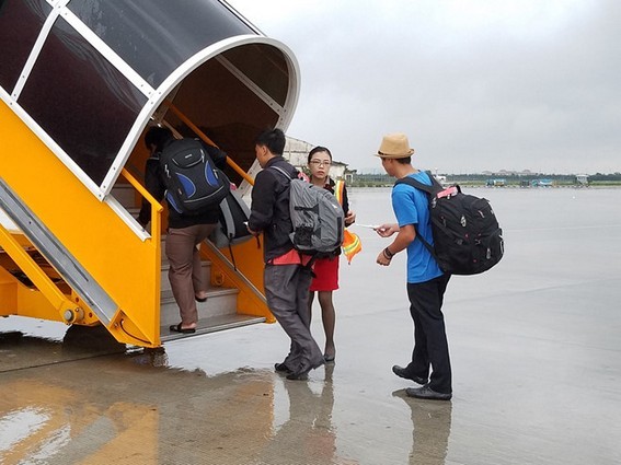 Hành khách lên tàu bay của hãng hàng không Vietjet tại sân bay Tân Sơn Nhất. Ảnh: Phước Tuần.