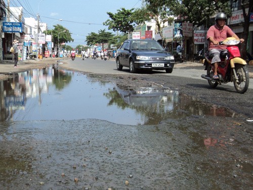 Tại khu vực giao lộ Nguyễn Văn Cừ - Võ Thị Sáu (thuộc TP.Bà Rịa) cũng rơi vào tình trạng tương tự vào mùa mưa. Đây cũng là các tuyến đường mới xây dựng nhưng ngay tại giao lộ này, mặt đường bị xuống cấp rất nghiêm trọng, xuất hiện nhiều ổ gà, ô voi nằm ngay giữa đường. Hay tuyến đường 30 Tháng 4 (TP.Vũng Tàu) cũng có nhiều đoạn bị xuống cấp, ngập úng nước khiến các phương tiện giao thông qua lại gặp nhiều khó khăn. Anh Lê Anh Tuấn (ngụ TP.Vũng Tàu) bức xúc: “Đây là 1 trong 2 con đường chính dẫn vào TP.Vũng Tàu nhưng từ nhiều năm nay, đường 30 Tháng 4 không có hệ thống thoát nước. Nước mưa luôn tù đọng trên mặt đường. Do lưu lượng xe chạy qua lại nhiều nên con đường này mau xuống cấp khiến việc đi lại và sinh hoạt của người dân gặp nhiền cản trở”.