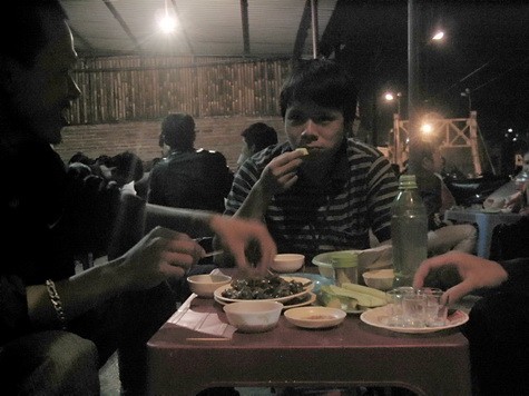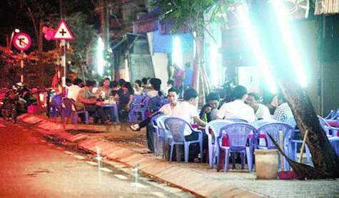 Cạnh bàn chúng tôi là bàn nhậu của bốn người, để ý thấy chưa đầy 30 phút mà họ đã gọi đến chai rượu thứ sáu. Để “nặng đô” hơn, các khách nhậu “tăng vôn” (tăng độ rượu) khi “bắt tội” chủ quán phải tìm mua cho bằng được hai chai Vodka loại to. “Nhậu cho đã mới thích!”, một khách trẻ cao hứng. Trong khi đó, nhiều bàn nhậu khác đã lời ra tiếng vào kiểu “mày uống thế thì về mẹ nó đi”…Gần 12 giờ đêm, quán nhậu trở nên quá tải và buộc chủ quán phải “mượn tạm” thêm lòng đường để trải chiếu phục vụ những “thượng đế” cũng đã nhậu từ nơi khác kéo đến.