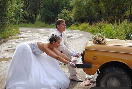 Cô dâu chú rể này chắc chắn sẽ muộn buổi lễ ở nhà thờ.