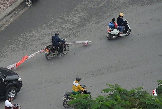 Những chiếc xe "tử thần" chở hàng công kềnh, quá khổ hàng ngày vẫn di chuyển trên phố phường Hà Nội, đe doạ sự an toàn của người dân tham gia giao thông khác.