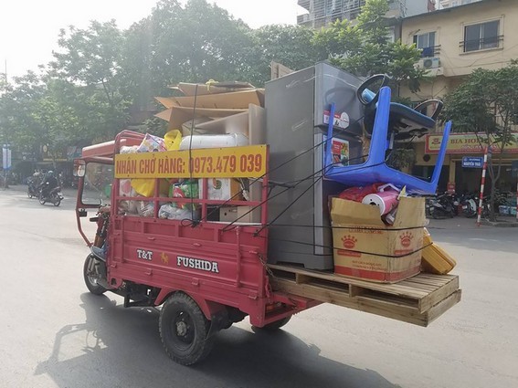 Một chiếc xe 3 bánh vận chuyển hàng hoá cồng kềnh
