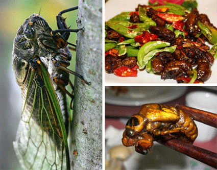Giống như người Camphuchia và Thái Lan, người Lào cũng rất thích các món ăn được chế biến từ côn trùng. Từ dế cơm, trứng kiến, đến con cà cuống, nhền nhện trong các món chiên, xào, dồn đậu phộng đến hấp cơm hay ngâm giấm đều rất ngon. Cà cuống - một côn trùng có ích sống nhiều ở các đồng ruộng Campuchia được người Lào nhập về với giá rất đắt là côn trùng được ưa chuộng nhất với hương vị thơm cay. Các món ăn từ côn trùng rất giàu đạm, được người Lào chế biến đa dạng, hấp dẫn và lạ mắt cũng giống như chính mùi vị của nó vậy.