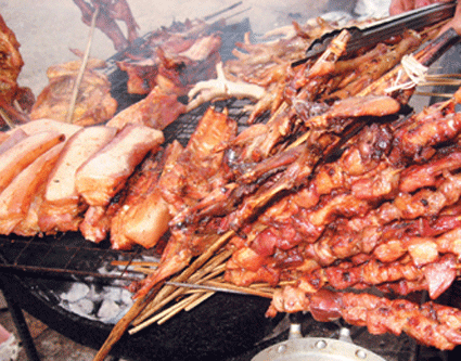 Lạp tiếng Lào có nghĩa là may mắn, là món ăn truyền thống trong lễ hội của người Lào và cũng là món ăn dân tộc gần gũi nhất của họ. Được làm từ thịt động vật, thường là thịt bò, thịt hươu hoặc có thể là thịt trâu, cá. Thịt được bằm nhuyễn với rau bạc hà xắt nhỏ và nước cốt chanh, không dùng đường, vị chua cay. Người ta thường dùng Lạp chung với các loại rau như hung lủi, ngò gai. Lạp là món ăn đãi tiệc, thường được dọn ra trong những dịp đặc biệt hoặc cho những vị khách danh dự.