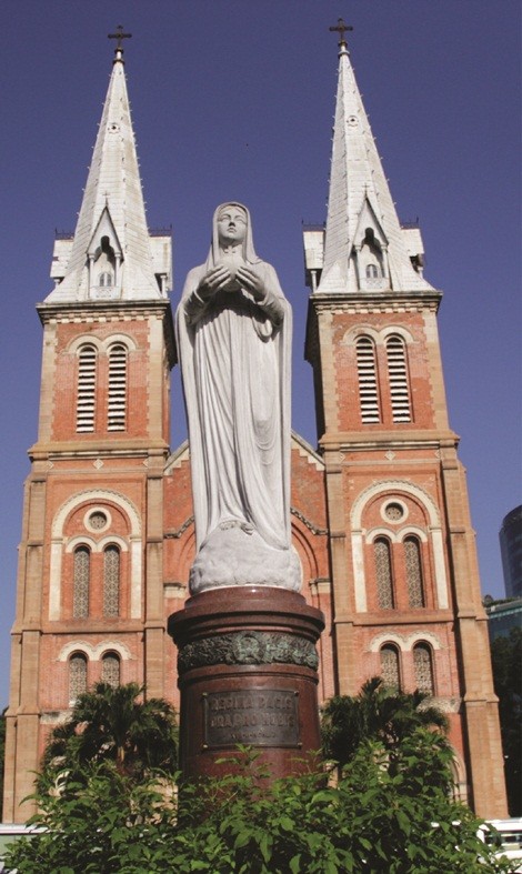 Đối diện với Bưu điện Trung tâm là Nhà thờ Đức Bà - một công trình được khởi công xây dựng vào năm 1877 và khánh thành năm 1880. Nhìn từ bên ngoài, toàn bộ nhà thờ từ mái đến tường là một màu đỏ gạch nung không tô trát. Nhà thờ Đức Bà là nhà thờ Công giáo có quy mô lớn và đặc sắc thu hút nhiều khách tham quan nhất tại TP.HCM. Sau Nhà thờ Chợ Quán được xây dựng vào năm 1674 thì Nhà thờ Đức Bà cũng được coi là công trình kiến trúc cổ kính nhất của TP.HCM. Với kiến trúc theo kiểu Roman (là phong cách kiến trúc của các vùng Trung và Tây Âu vào khoảng thế kỷ 11 và thế kỷ 12) cải biên pha trộn nét Gothic (một phong cách kiến trúc bắt nguồn từ châu Âu, chủ yếu là Pháp, khoảng thế kỷ thứ 12 nên được gọi là kiến trúc kiểu Pháp).