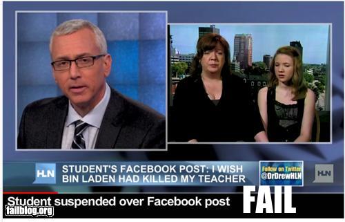 Em sẽ nhận được tin báo facebook ngay bây giờ thôi nên khi đọc được comment này, hãy đến thẳng phòng hiệu trưởng. Một lần nữa chúc mừng vì đã bị bắt gặp sử dụng điện thoại di động trong giờ học, cũng như lúc em bị trượt bài kiểm tra môn toán ý. Hơn nữa, hãy thử nghĩ nếu bạn bè và gia đình em biết được em sử dụng điện thoại trong giờ học, họ sẽ nghĩ gì? Em sẽ nghĩ gì?