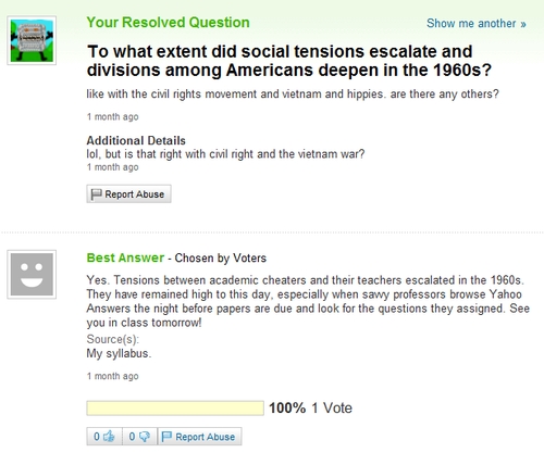Một bạn học trò lười post câu hỏi về nhà lên Yahoo Question mong nhận