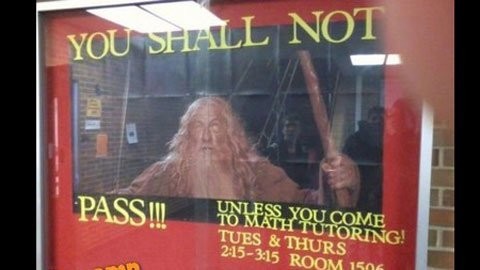 Tấm biển quảng cáo gia sư viết: “Bạn sẽ không thi qua trừ khi tới lớp học thêm môn Toán vào 2h15-3h15, thứ Ba và thứ Tư, phòng 1506