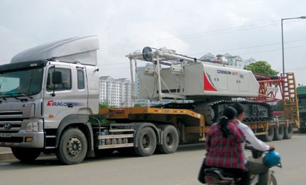 Xe sơmi romooc chở các khối linh kiện không thể tháo rời thì cứ ra đường là ăn phạt vì quá tải. Ảnh: PV.
