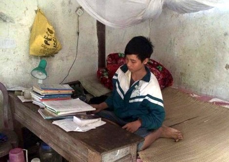 Lương, người con trai út đang học bài và chống chọi với bệnh tim.