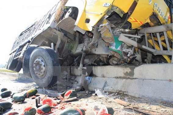 Vụ tai nạn khiến 2 người trên xe gồm lái xe Huỳnh Tấn Lực, sinh năm 1992, (trú tại phường Đập Đá, huyện An Nhơn, tỉnh Bình Định) và phụ xe bị thương nhẹ, xe bị nghiêng, đầu xe bị nát bét, xe bị hư hỏng nặng, một lượng lớn dưa hấu chở trên xe bị rơi xuống đường.