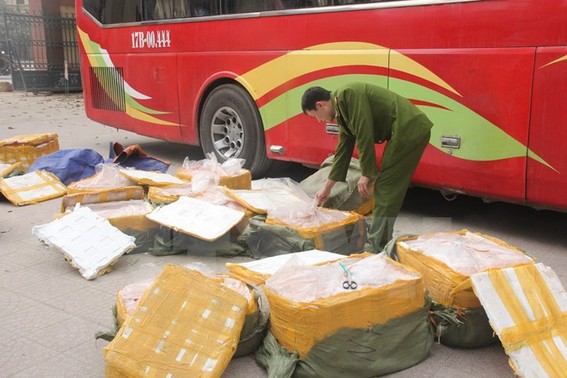 Ngày 20/5, Chi cục Quản lý thị trường tỉnh Ninh Bình phối hợp với lực lượng chức năng phát hiện, bắt quả tang xe khách Hải Vân chở tám thùng xốp chứa nội tạng động vật với trọng lượng 5,8 tạ, bốc mùi hôi thối.