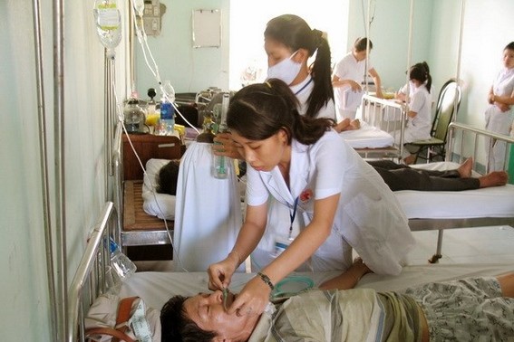 Trong số hơn 100 công nhân bị ngộ độc có người bị nặng, có người bị nhẹ. Hiện nay tại Bệnh viện có 13 công nhân bị ngộ độc nặng, nôn mửa nhiều và huyết áp xuống khá thấp.