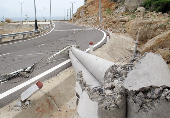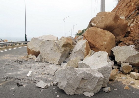 Ông Phạm Minh Tân, Phó Giám đốc Ban quản lý các dự án giao thông tỉnh Ninh Thuận cho biết, mưa lớn xảy ra trong những ngày qua đã kéo theo công trình đường ven biển Mũi Dinh-Cà Ná bị các tảng đá to ở đỉnh mái taluy sạt đổ xuống nhiều đoạn đường.