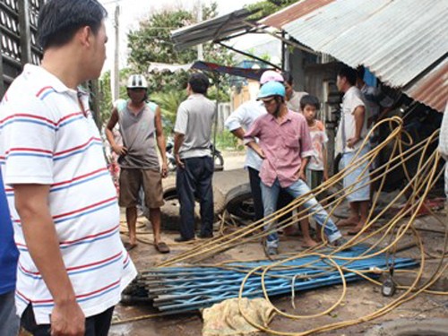 Sau khi nghe một tiếng nổ lớn vang lên tại tiệm sửa xe này, mọi người chạy đến thì thấy nhiều mảnh tôn lợp mái trong tiệm bị bay lên cao, văng tung tóe khắp nơi. Ngay trước cửa tiệm sửa xe nhiều người nằm bất tỉnh, máu me lênh láng.