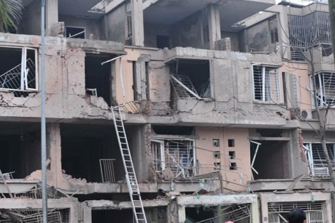 Hiện trường kinh hoàng của vụ nổ (Ảnh: Lê Minh Sơn/Vietnam+)
