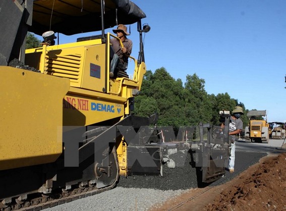 Thi công đường Hồ Chí Minh qua Đắk Lắk. (Ảnh: Dương Giang/TTXVN)