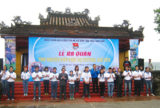Sáng 2/4, Tại Nghinh Lương Đình, Tỉnh đoàn TT-Huế đã tổ chức Lễ xuất quân cho 300 Tình nguyện viên Festival Huế 2012