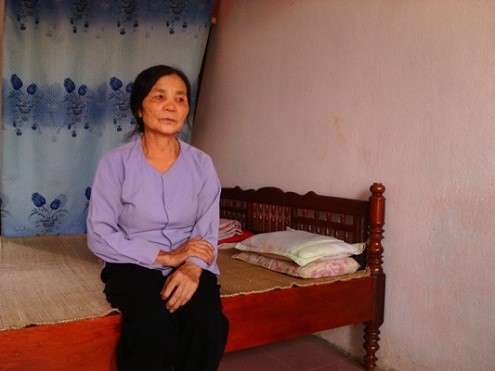 Trong căn nhà nhỏ, nhìn khắp xung quanh không có thứ gì quý giá, chỉ vỏn vẹn hai chiếc giường đặt cạnh nhau, một chiếc để nằm, một chiếc ngồi uống nước, bên cạnh là bàn thờ cụ ông Tăng Văn Bầm (chồng bà Thanh). Không giấu nổi sự đau buồn, bà Thanh rơm rớm nước mắt: “Ông nhà tôi vừa mất cuối năm ngoái vì bệnh tật quá nặng, giờ chỉ còn mình tôi sống trong căn nhà này thôi”.