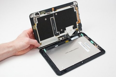 Một trong những lý do chính khiến cho việc tháo dỡ Kindle Fire HD đơn giản là vì Amazon đã quyết định bố trí hầu hết linh kiện dính vào thân sau của máy, thay vì chỉ coi thân sau là tấm ốp bảo vệ.