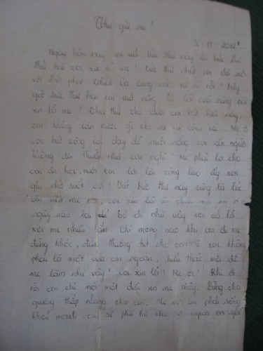 Trong thư tuyệt mệnh dài hơn 2 trang giấy, Trâm viết: “Có những chuyện mẹ không hiểu được đâu và mẹ không được để bố dượng đến thắp hương sau khi con chết”.