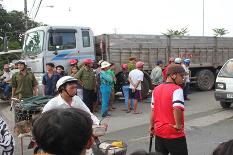 Sau khi va chạm với chiếc xe tải, hai nữ sinh đi trên một chiếc xe máy ngã xuống đường, một em bị cán chết tại chỗ. Tài xế gây ra vụ tai nạn đã rời khỏi hiện trường.