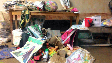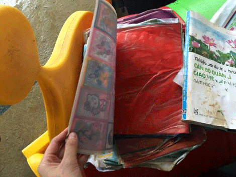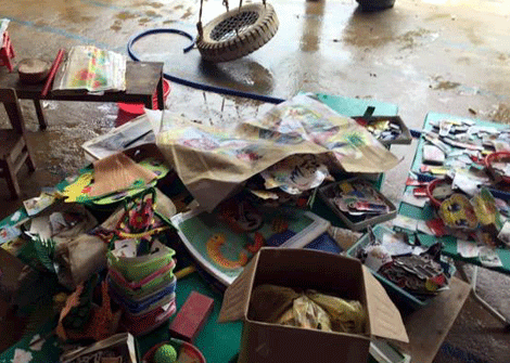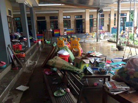 Sách vỡ, đồ dùng học tập, chăn màn trường mầm non Minh Cầm thứ thì bị trôi, thứ thì ướt đẫm bùn đất không thể sử dụng được