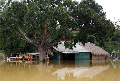 Những ngôi nhà tan hoang, lớp bùn dày đặc, cây cối không còn màu xanh là những gì còn sót lại sau lũ. Nhìn hình ảnh những cụ già, em nhỏ phải dựa vào chỗ trú ngụ duy nhất là trần nhà để tránh lũ.
