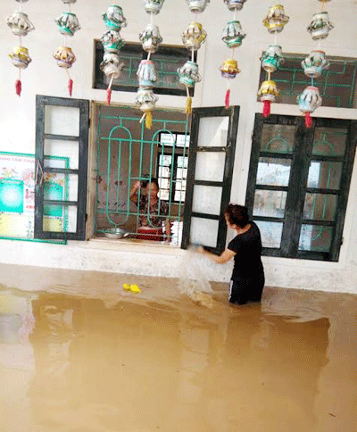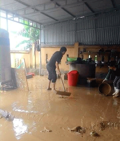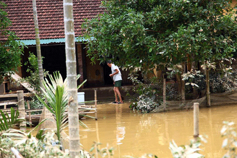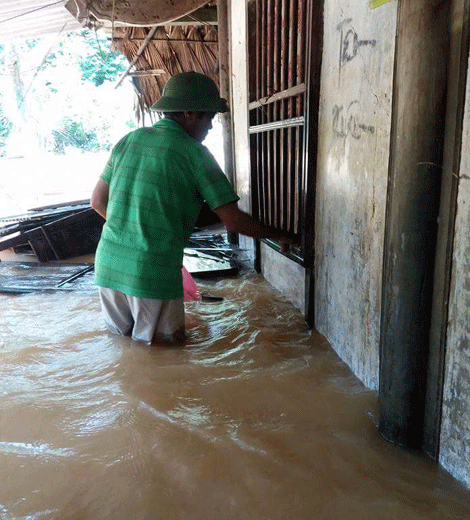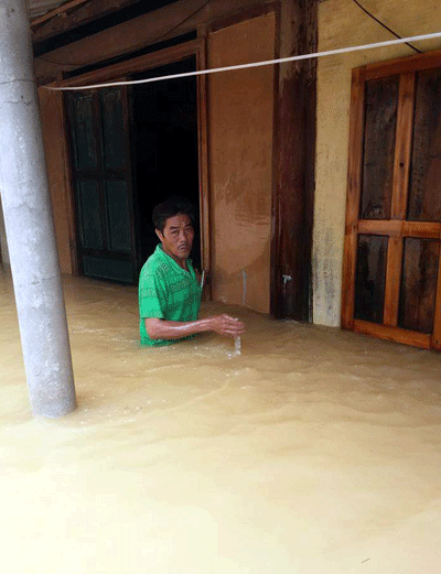 Hộ ông Lê Đình Trường, xóm Hương Thọ, xã Đức Hương - Vũ Quang - Hà Tĩnh chiều 18/10 nước lũ vẫn chưa rút hết.