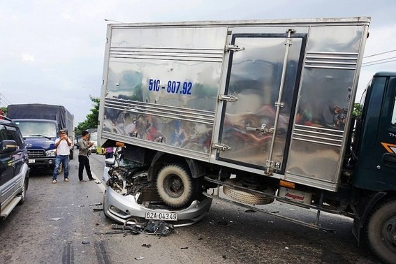 Khi xe đi đến ngã tư Giếng Nước (ấp Đình, xã Tân Xuân, huyện Hóc Môn, TP HCM) thì tông cực mạnh vào ô tô bốn chỗ do tài xế Nguyễn Thành Lập (39 tuổi, quê Long An) đang dừng đèn đỏ.