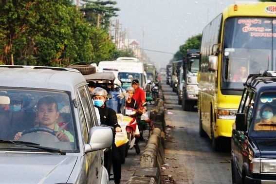 Giao thông ùn tắt sau vụ tai nạn. Ảnh: Nguyễn Yên