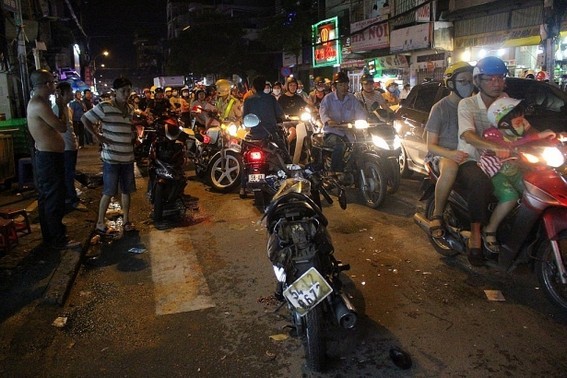 Khi xe vừa qua giao lộ Nguyễn Biểu – Trần Hưng Đạo (quận 5) thì bất ngờ thông vào 2 xe máy đang chạy cùng chiều. Cú va chạm khiến 2 xe văng ra đường, một người điều khiển xe máy bị thương.