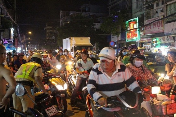 Giao thông qua khu vực bị ùn ứ. Ảnh: Nguyễn Yên