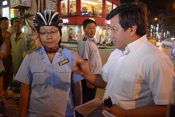 Tối 4/9, ông Đoàn Ngọc Hải – Phó Chủ tịch UBND quận 1 đã cùng Đội QLTTĐT quận, CSTT, CSGT quận 1 tiếp tục xuống đường “đòi” vỉa hè cho người đi bộ.