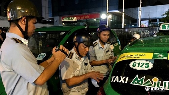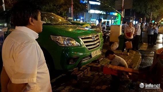 Trong tối 9/8, hàng loạt taxi bị cẩu đi do chủ xe không có mặt tại nơi đậu xe.