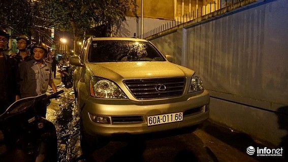 Trên đường Nguyễn Văn Thủ, đoàn bắt gặp một chiếc xe Lexus đậu chiếm hết vỉa hè.