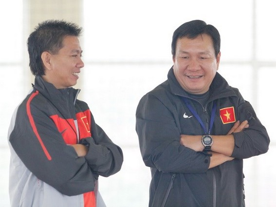 Huấn luyện viên Hoàng Văn Phúc và trợ lý Hoàng Anh Tuấn. (Ảnh: Minh Chiến/Vietnam+)